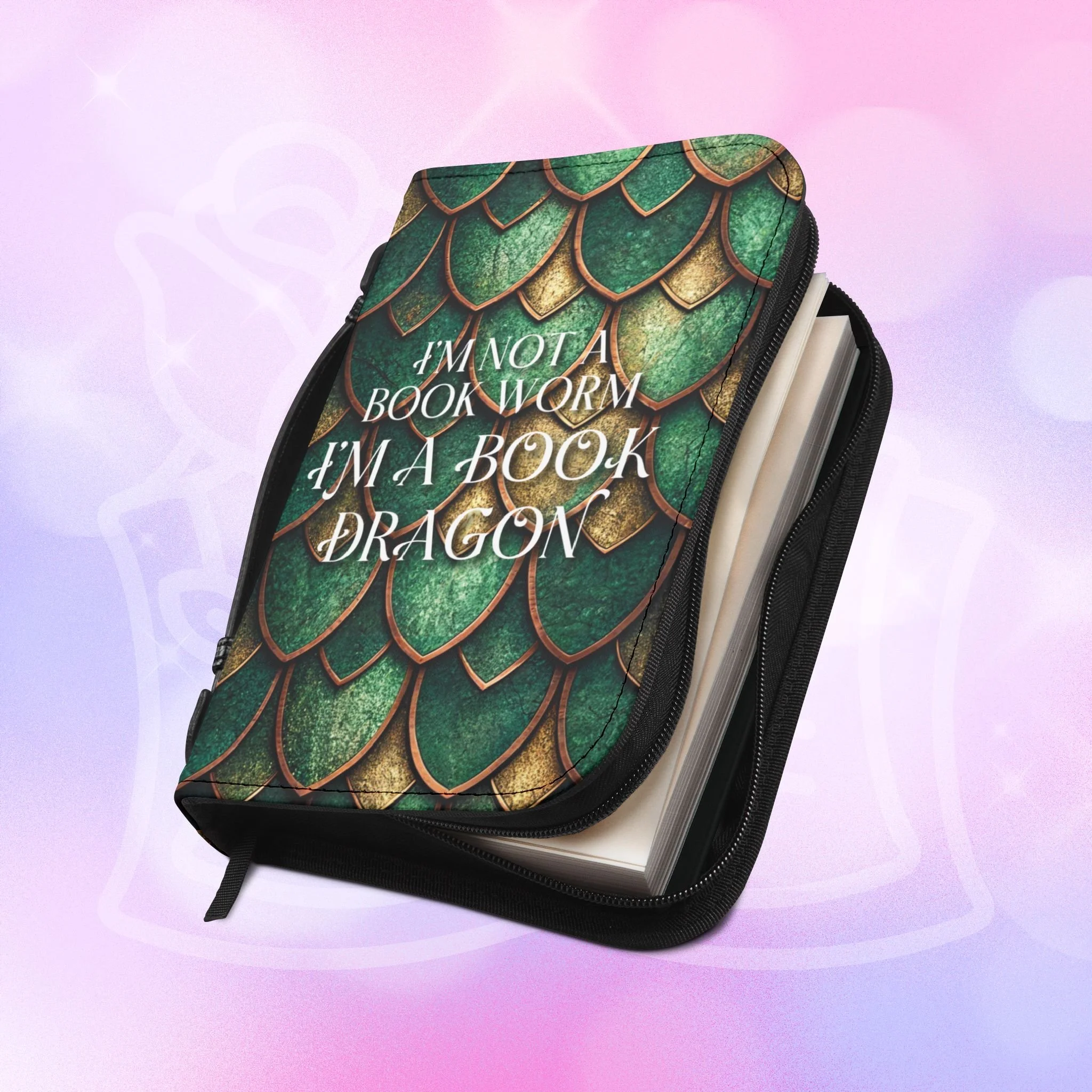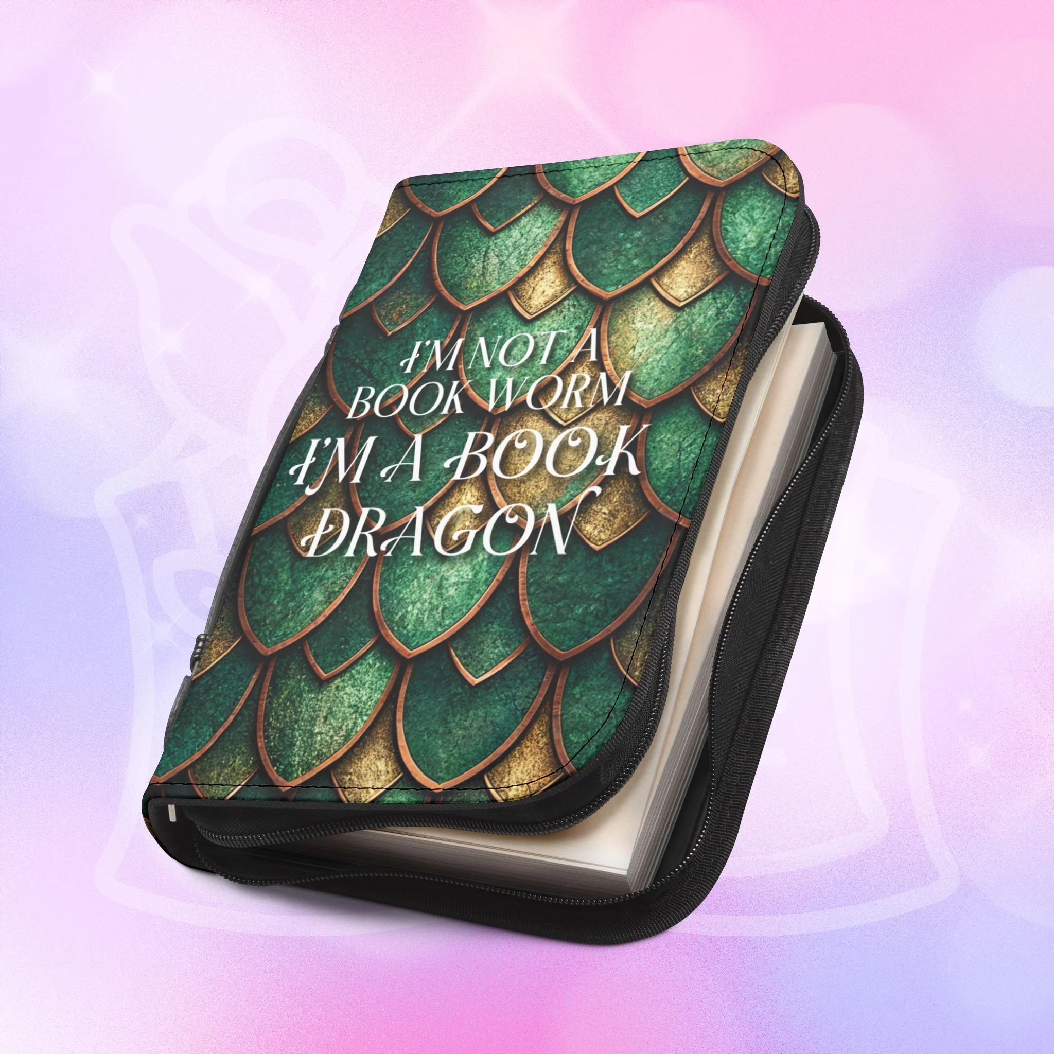 Book Dragon Annotation Case — Personalizable Dragon Scales Zippered Book Case