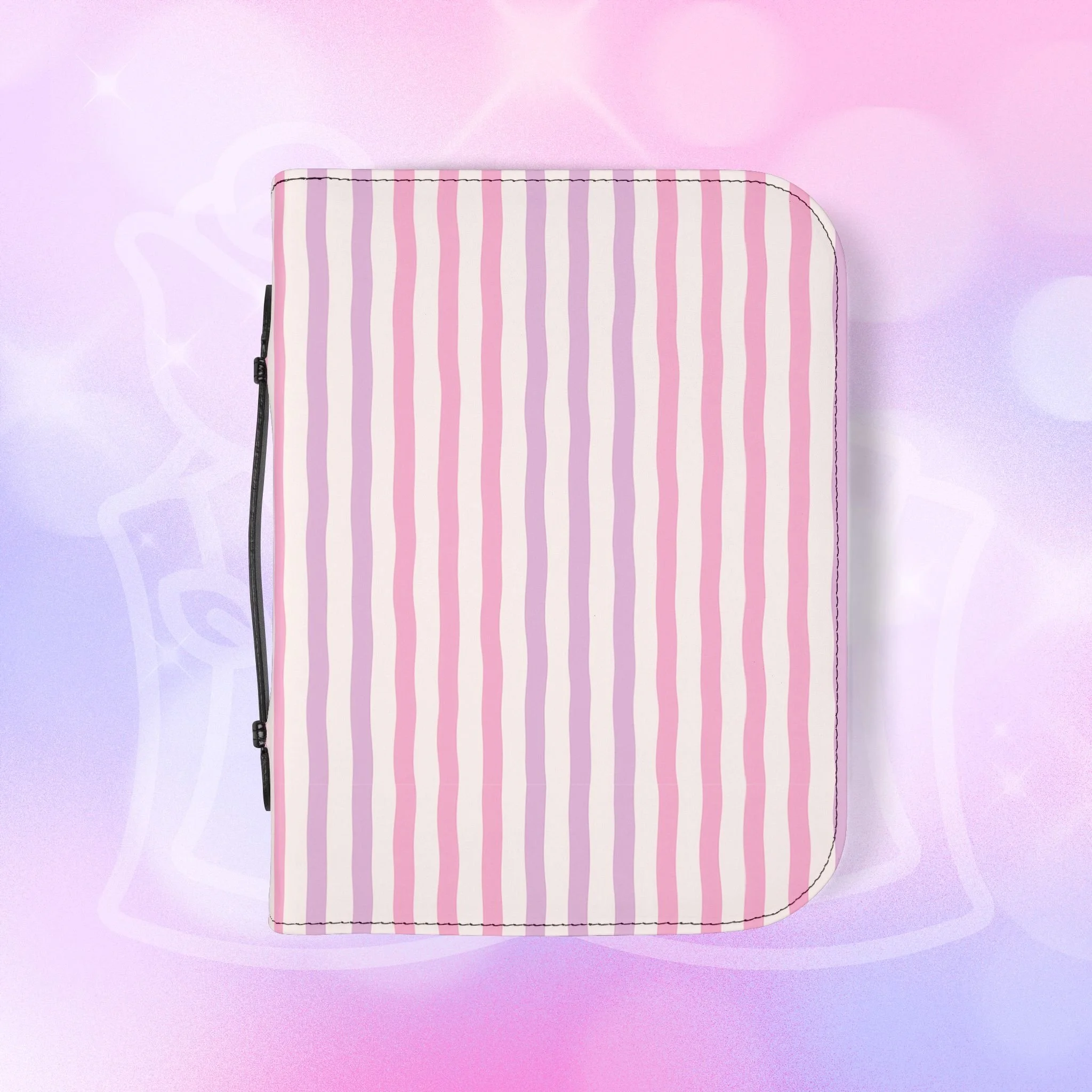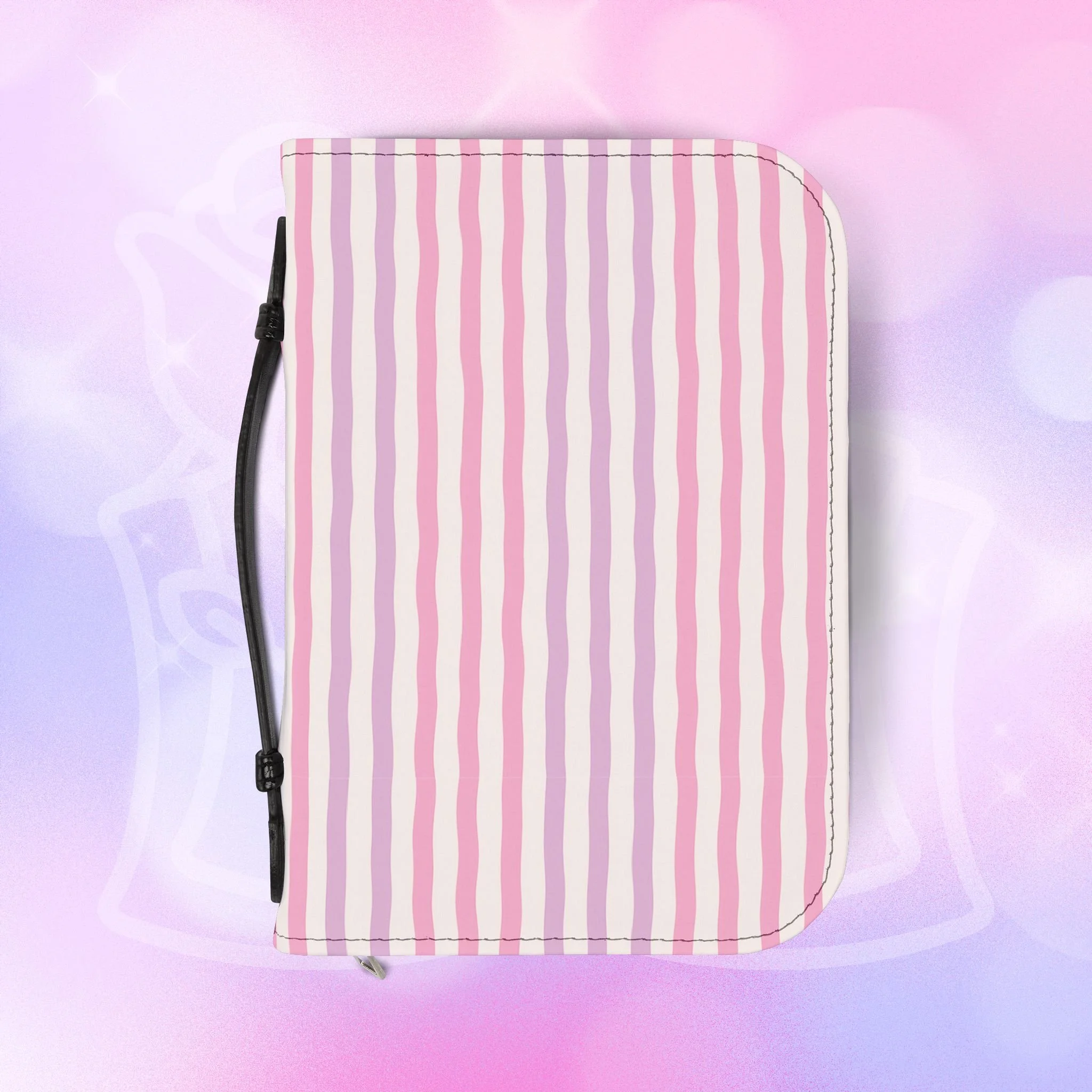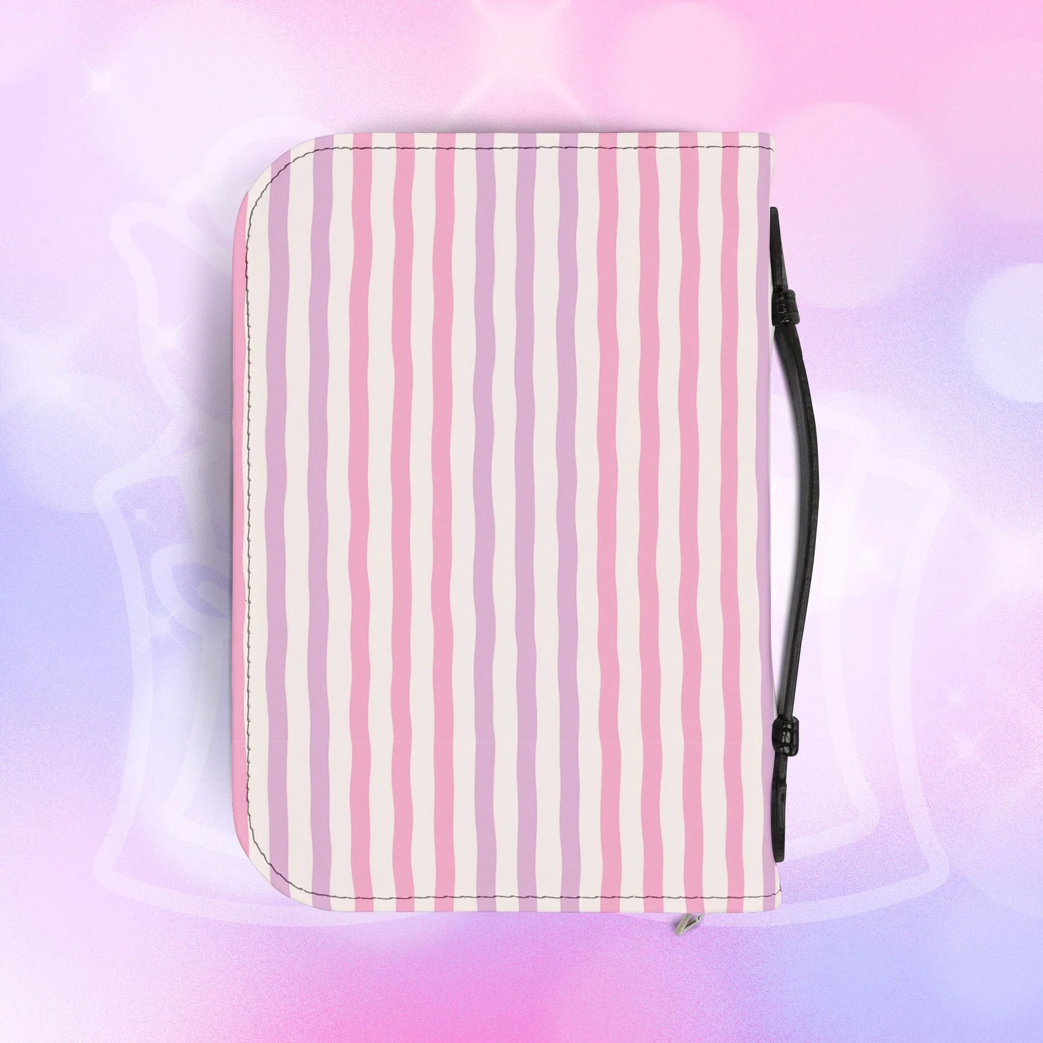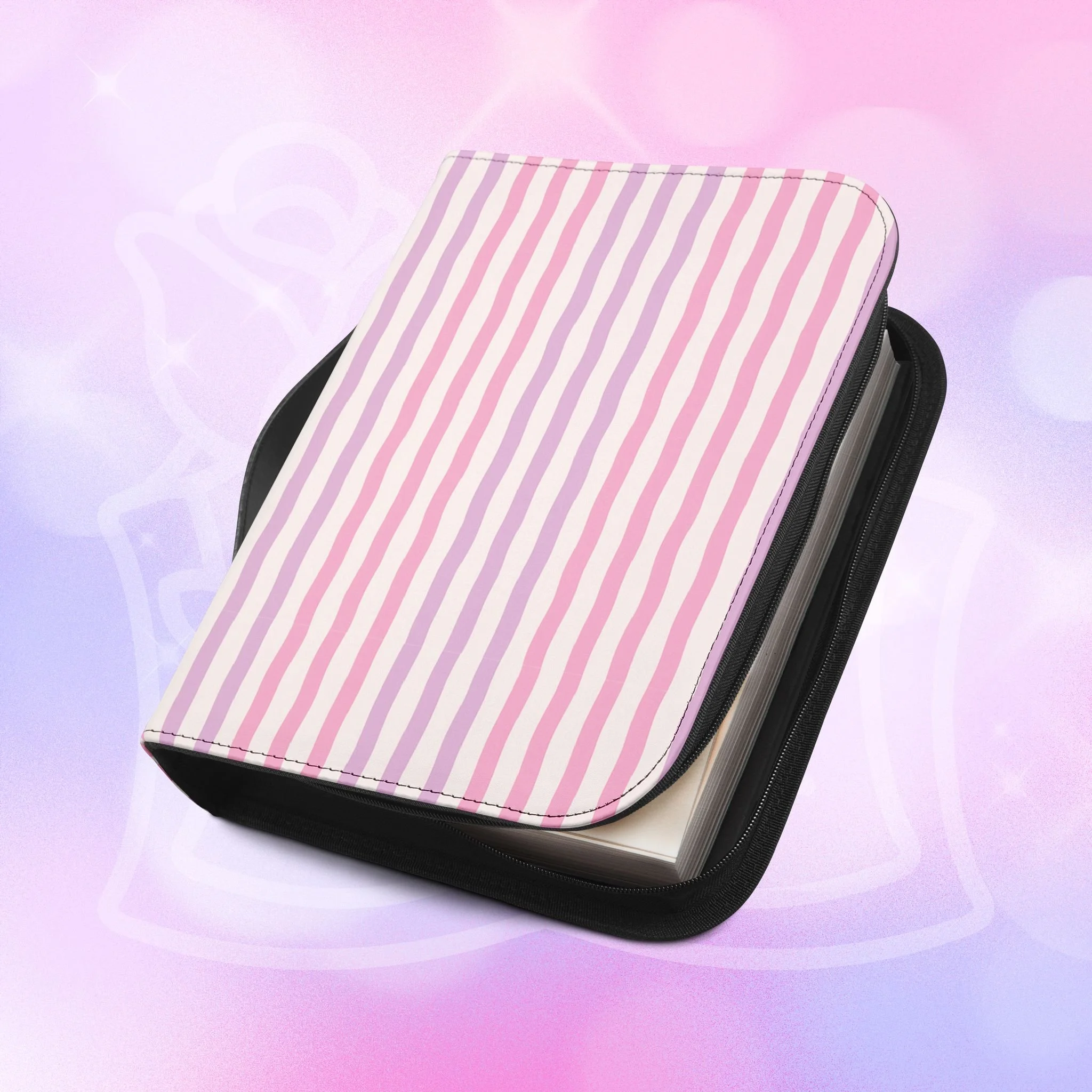Add your name to the back, just let us know at checkout! This soft PU leather cover brings bold personality to your book while keeping it protected and organized. The green-and-white striped exterior and deep rose lettering create a playful, confident look that stands out on a bookshelf or tucked into a tote. Inside, multiple pockets and compartments hold notes, pens, bookmarks, and more so everything you need for reading is easily at hand. A secure zipper and black wrist handle make it simple to carry between home, work, and book club. Recommend sizing up for a roomier fit when selecting from available sizes.