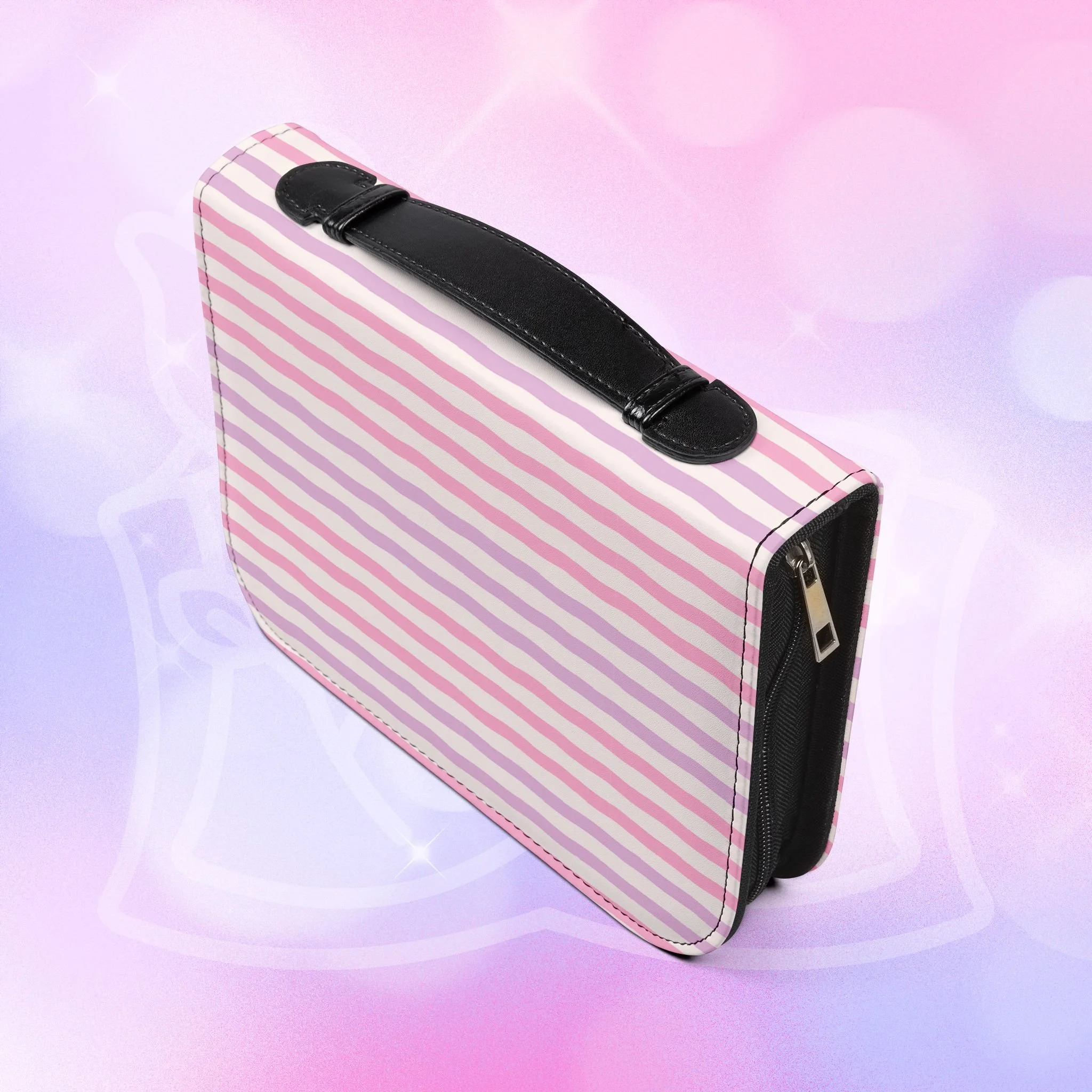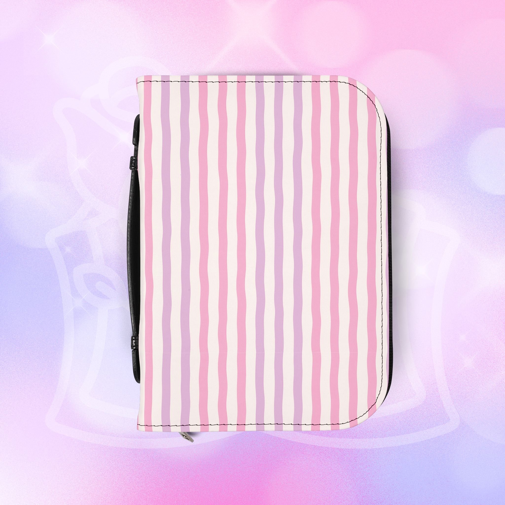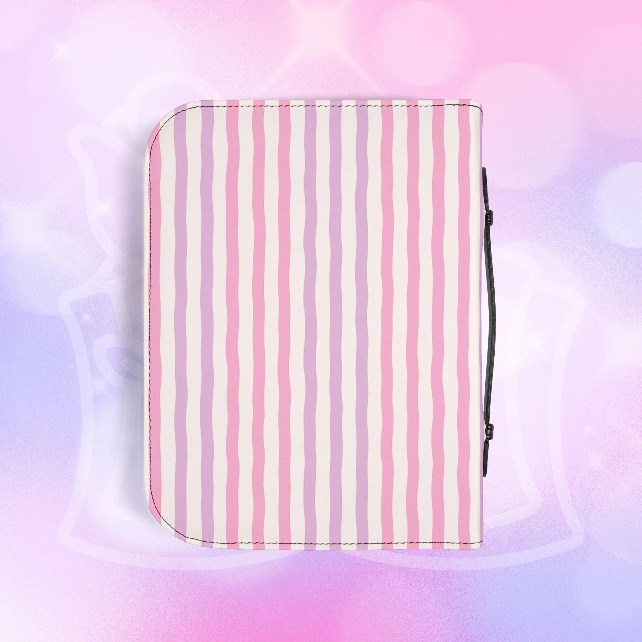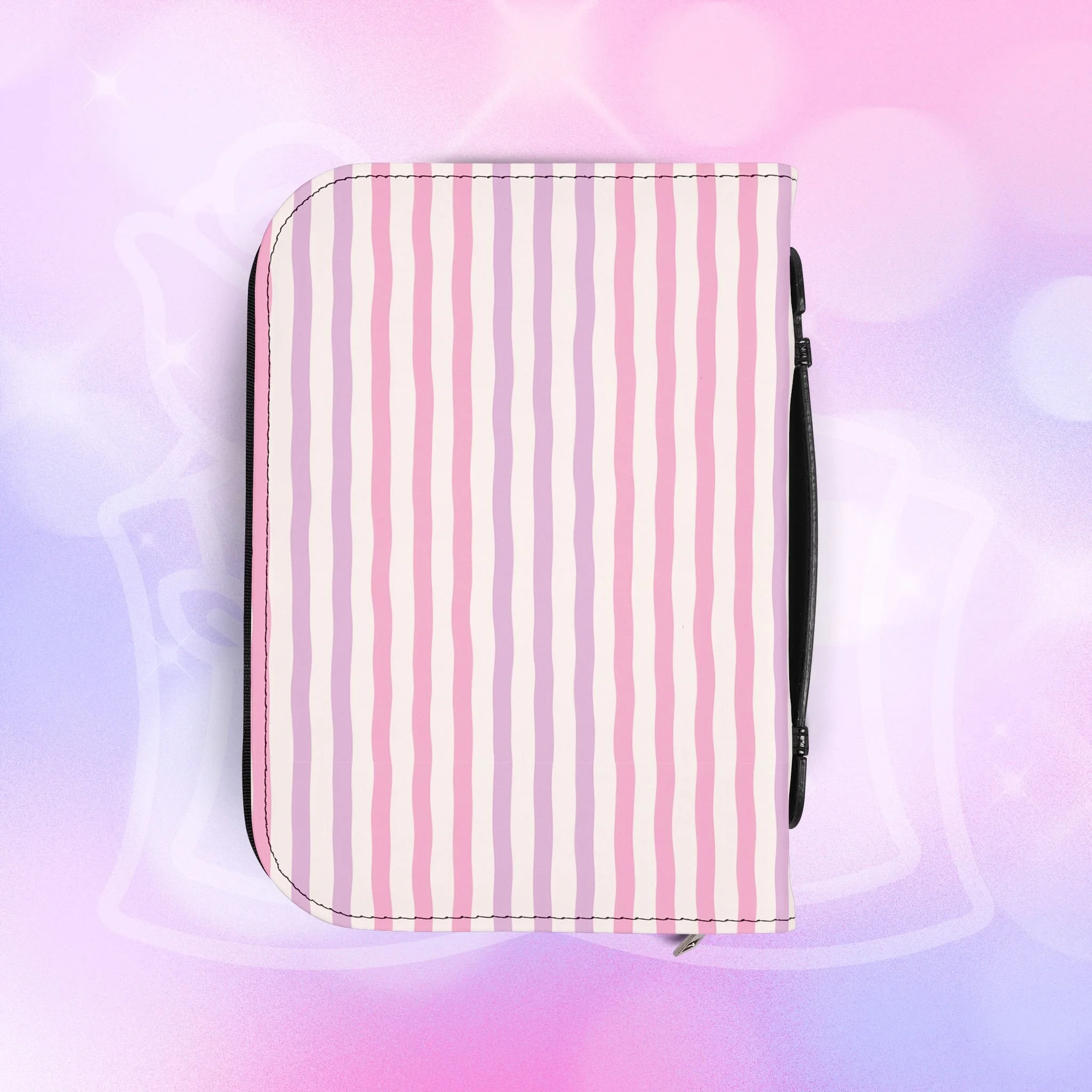 Add your name to the back, just let us know at checkout! This soft PU leather cover brings bold personality to your book while keeping it protected and organized. The green-and-white striped exterior and deep rose lettering create a playful, confident look that stands out on a bookshelf or tucked into a tote. Inside, multiple pockets and compartments hold notes, pens, bookmarks, and more so everything you need for reading is easily at hand. A secure zipper and black wrist handle make it simple to carry between home, work, and book club. Recommend sizing up for a roomier fit when selecting from available sizes.
