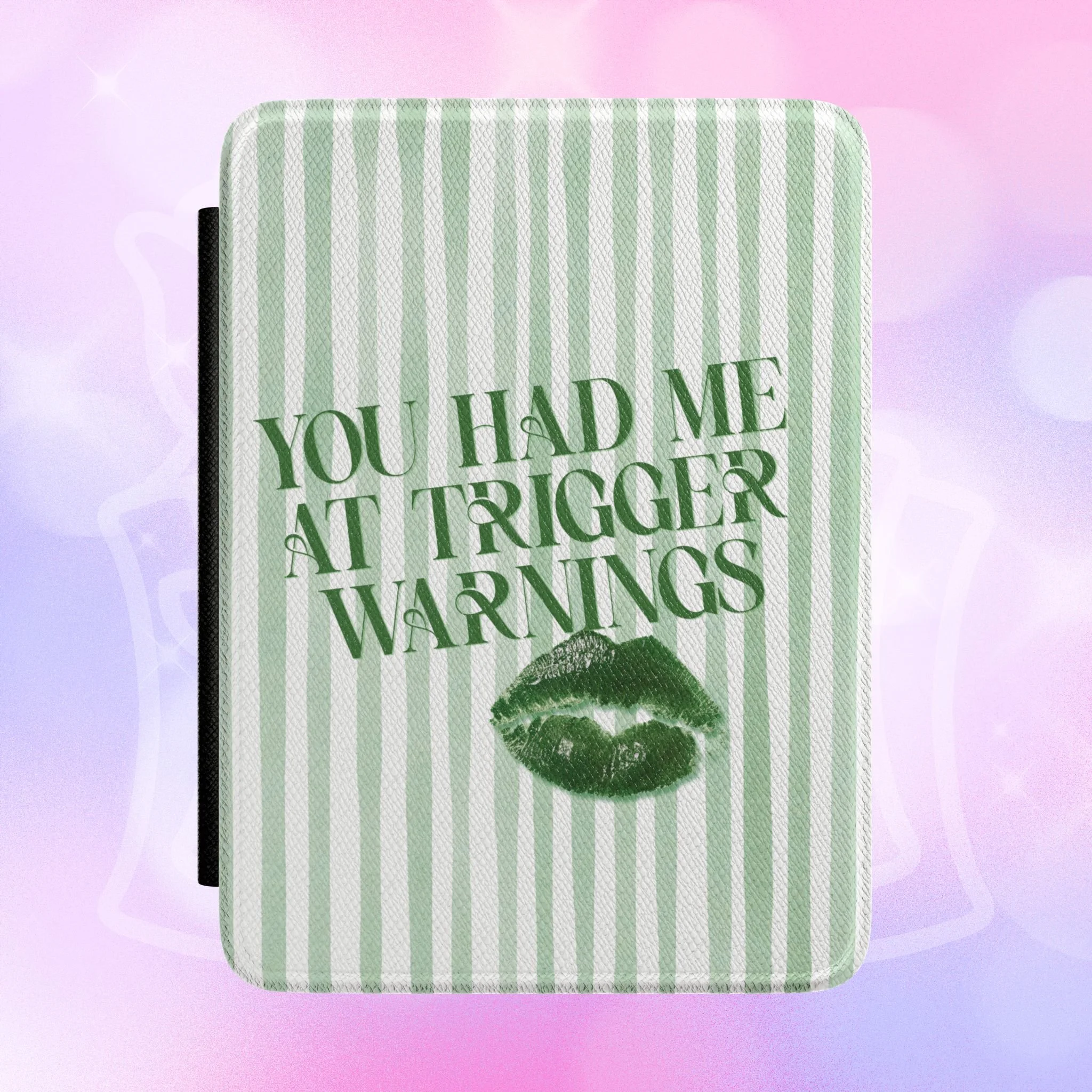 "I Came for the Spice, Stayed for the Trauma" Customizable Kindle Case - Green Striped Kiss E-Reader Cover
