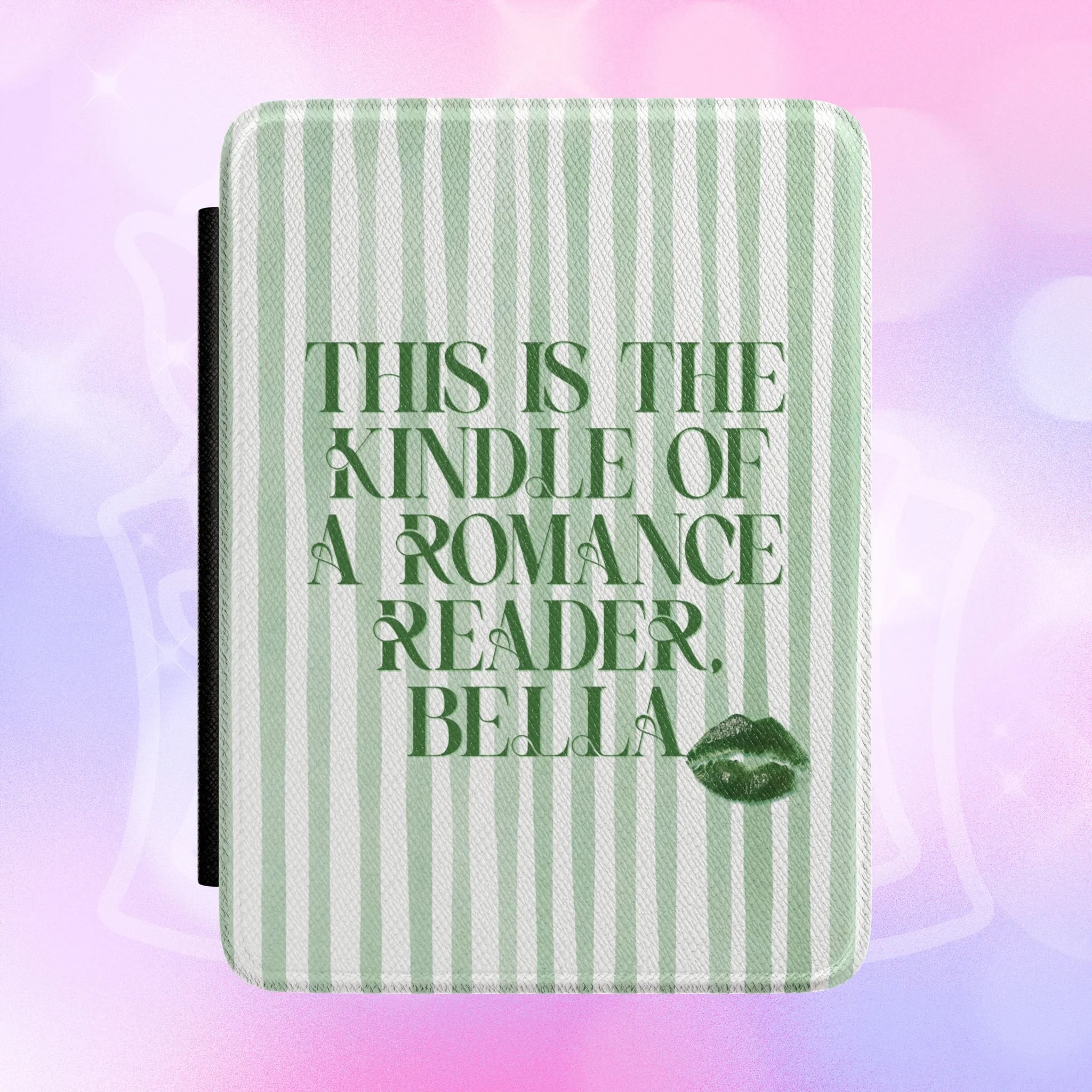 "Morally Grey is my Favorite Color" Customizable Kindle Case - Green Striped Kiss E-Reader Cover