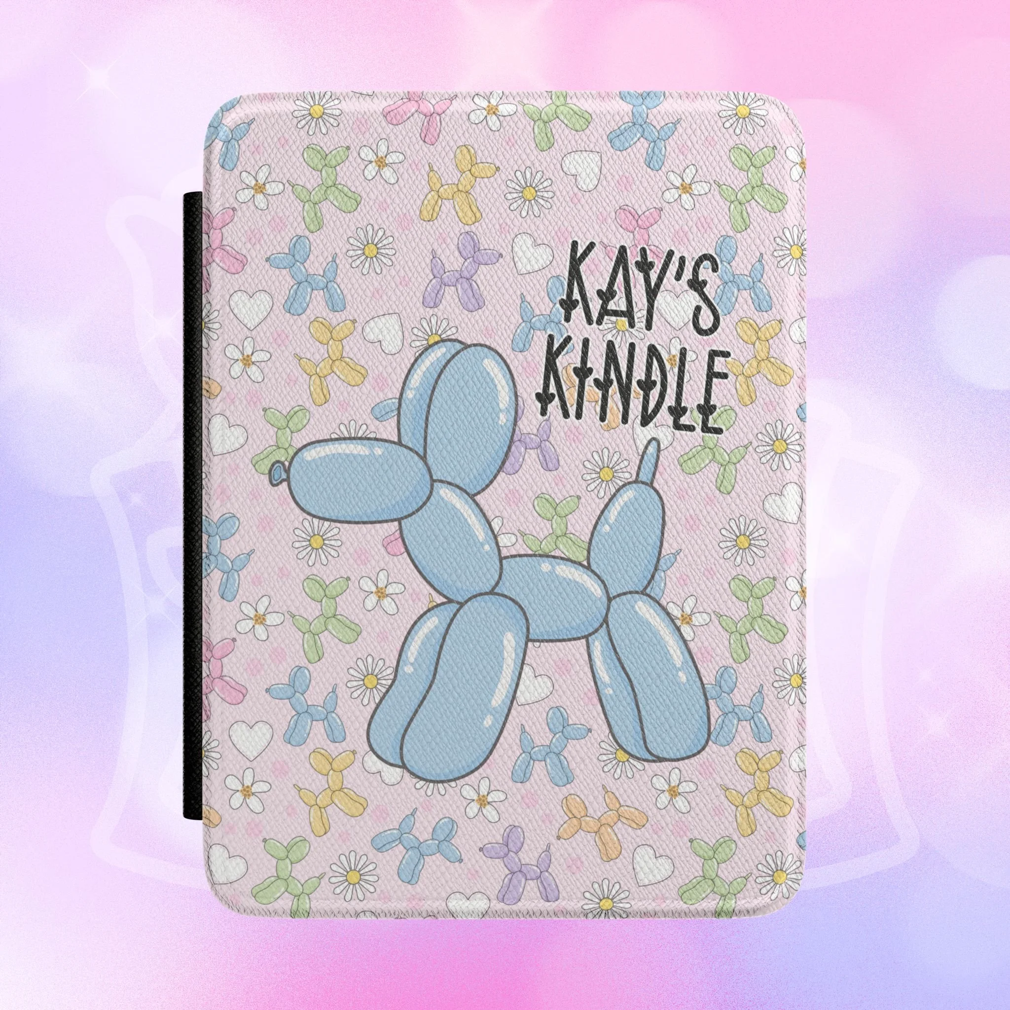 Personalized Balloon Dog Kindle Case – Cute Pastel Heart Pattern eReader Cover