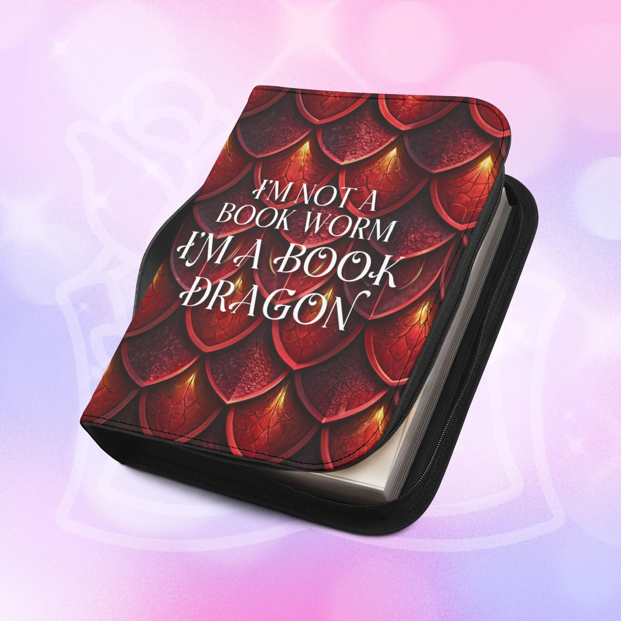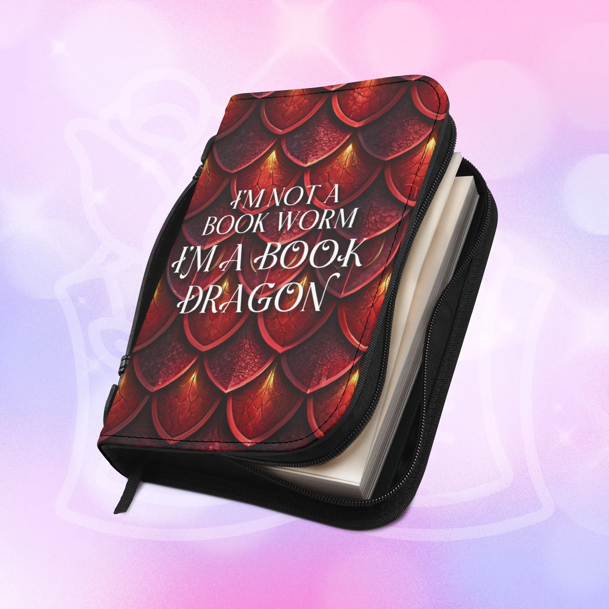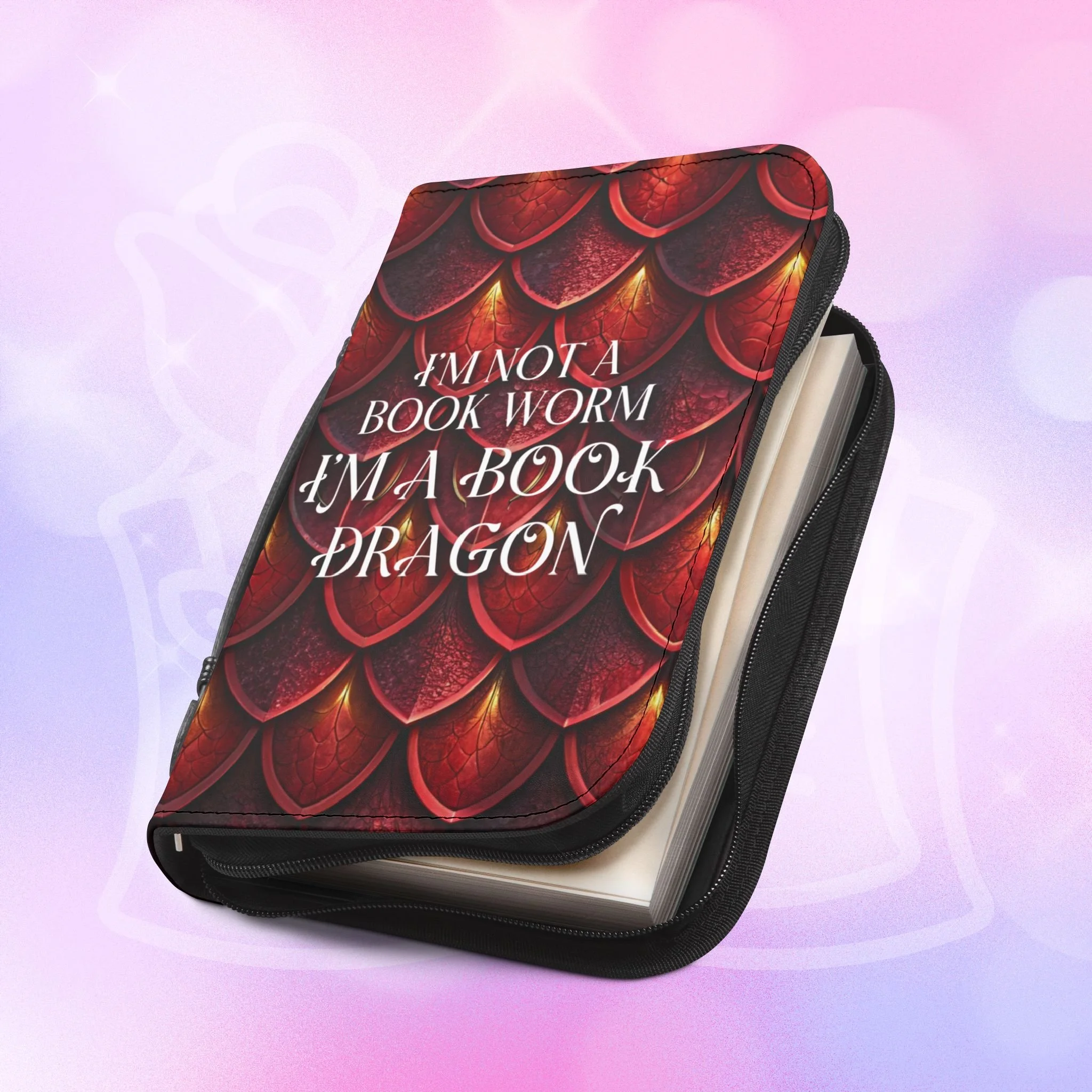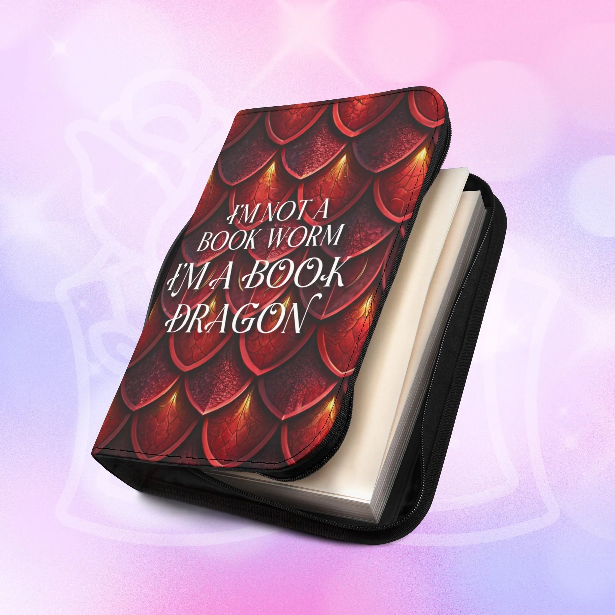 Add your name to the back, just let us know at checkout! This soft PU leather cover brings bold personality to your book while keeping it protected and organized. The bright exterior creates a playful, confident look that stands out on a bookshelf or tucked into a tote. Inside, multiple pockets and compartments hold notes, pens, bookmarks, and more so everything you need for reading is easily at hand. A secure zipper and black wrist handle make it simple to carry between home, work, and book club. Recommend sizing up for a roomier fit when selecting from available sizes.