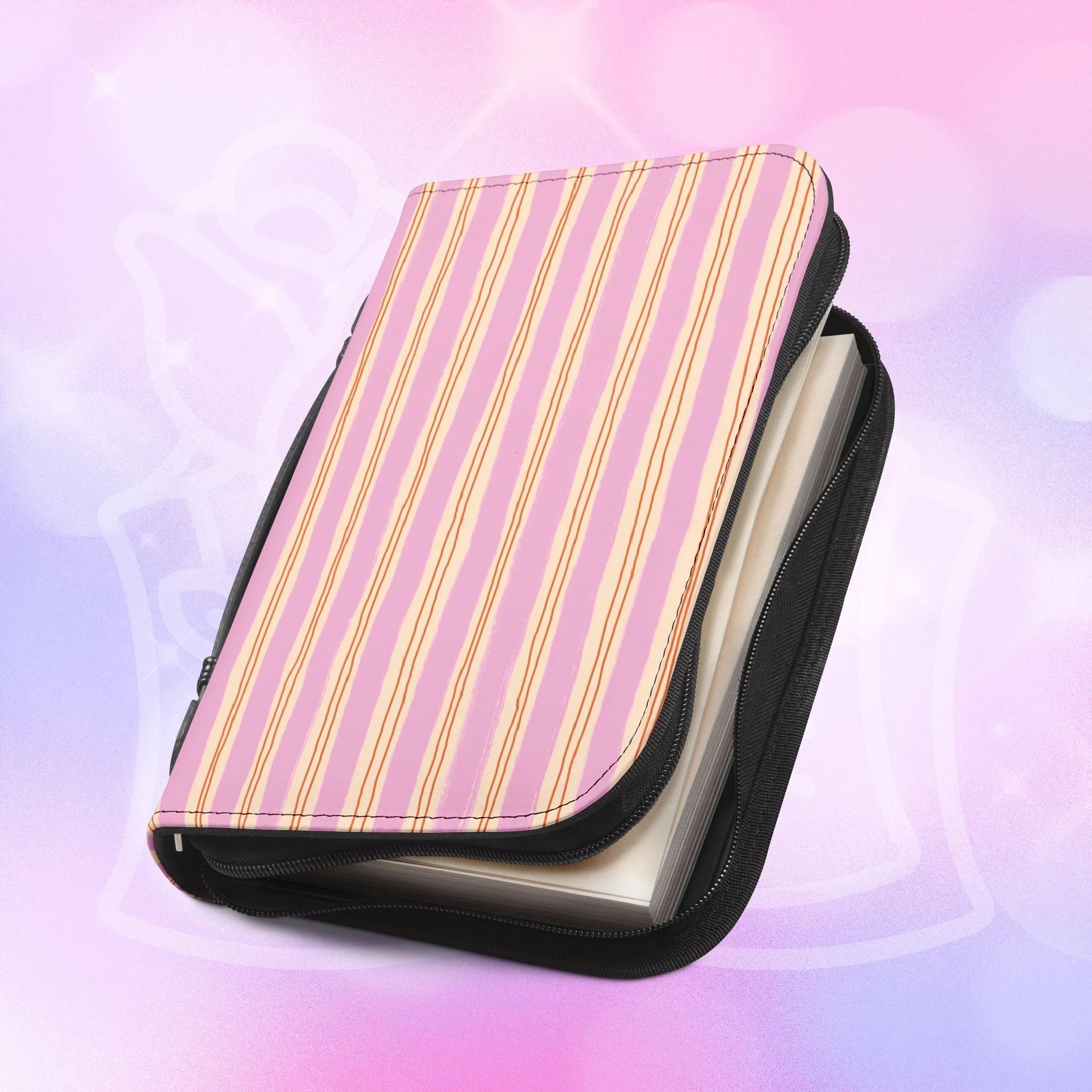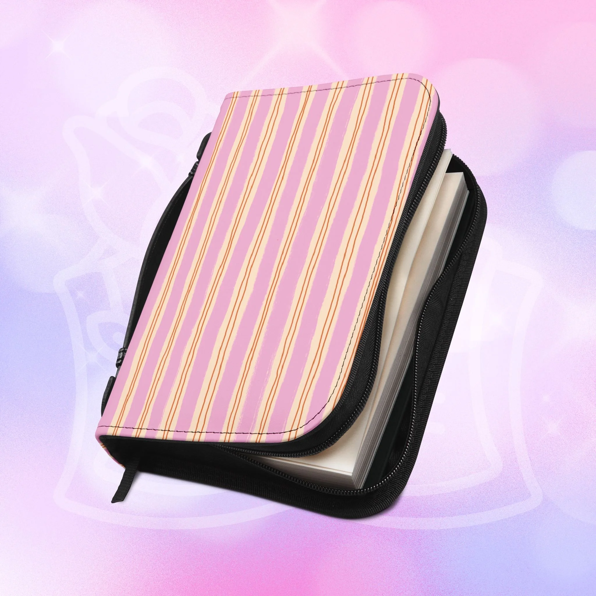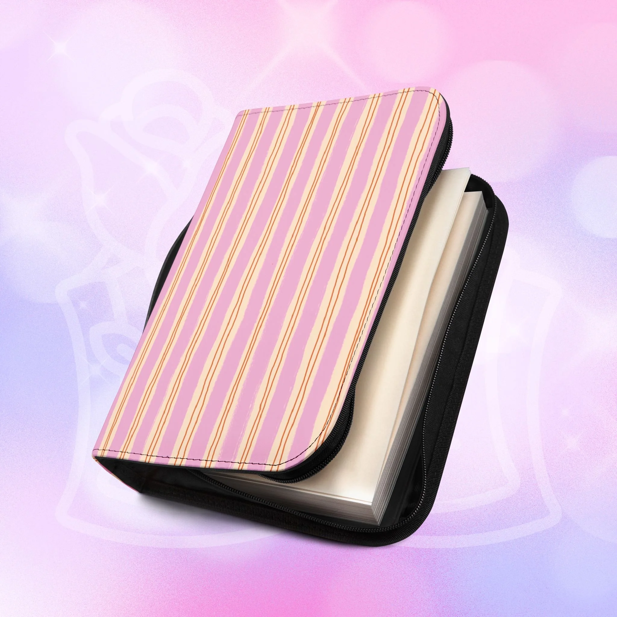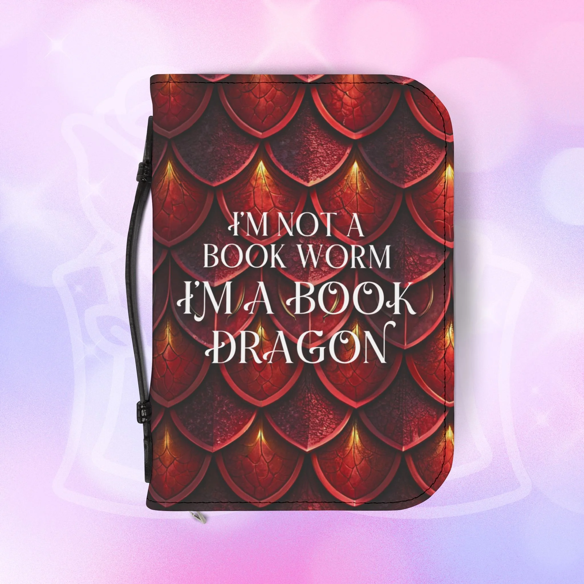 Add your name to the back, just let us know at checkout! This soft PU leather cover brings bold personality to your book while keeping it protected and organized. The bright exterior creates a playful, confident look that stands out on a bookshelf or tucked into a tote. Inside, multiple pockets and compartments hold notes, pens, bookmarks, and more so everything you need for reading is easily at hand. A secure zipper and black wrist handle make it simple to carry between home, work, and book club. Recommend sizing up for a roomier fit when selecting from available sizes.