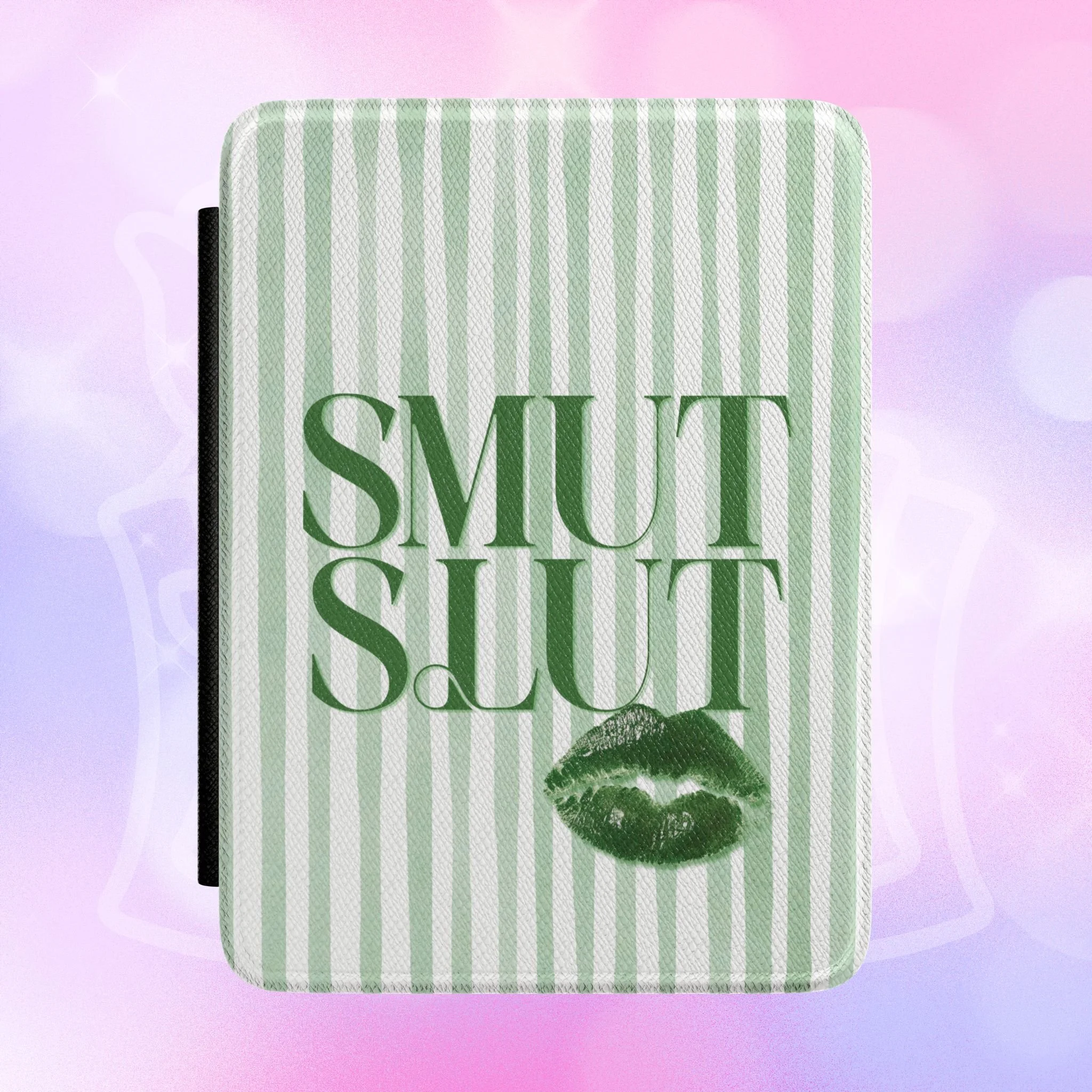 "Smut Slut" Customizable Kindle Case - Green Striped Kiss E-Reader Cover