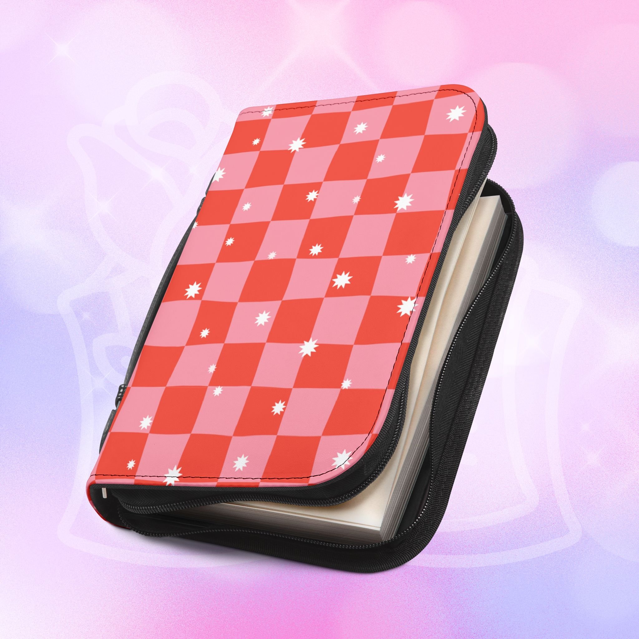 Add your name to the back, just let us know at checkout! This soft PU leather cover brings bold personality to your book while keeping it protected and organized. The bright exterior creates a playful, confident look that stands out on a bookshelf or tucked into a tote. Inside, multiple pockets and compartments hold notes, pens, bookmarks, and more so everything you need for reading is easily at hand. A secure zipper and black wrist handle make it simple to carry between home, work, and book club. Recommend sizing up for a roomier fit when selecting from available sizes.